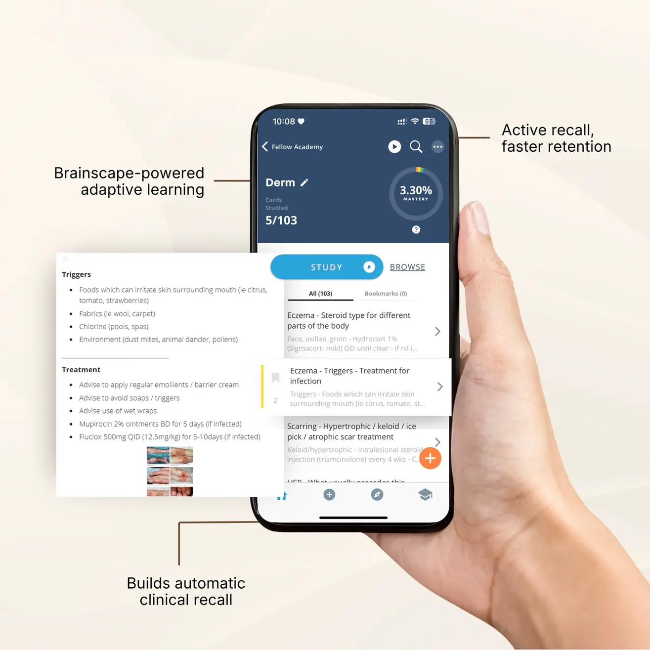 "Fellow Academy Flashcards and Exam Notes gave me the clear structure I really needed for exam preparation. Relying solely on lecture slides was too overwhelming, especially during busy clinic days. With these resources, I could also easily revise on my phone during short breaks, making study more manageable and less stressful."